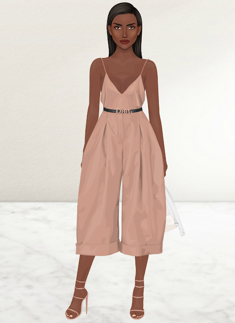 dress, trousers, bag, shoes and belt